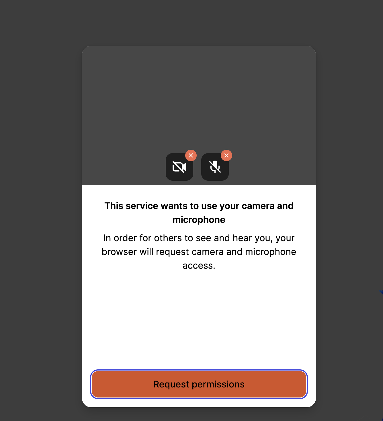 Açılan sayfada ilk olarak Request permissions butonuna tıklayarak kamera ve mikrofon izinlerini vermelisiniz.